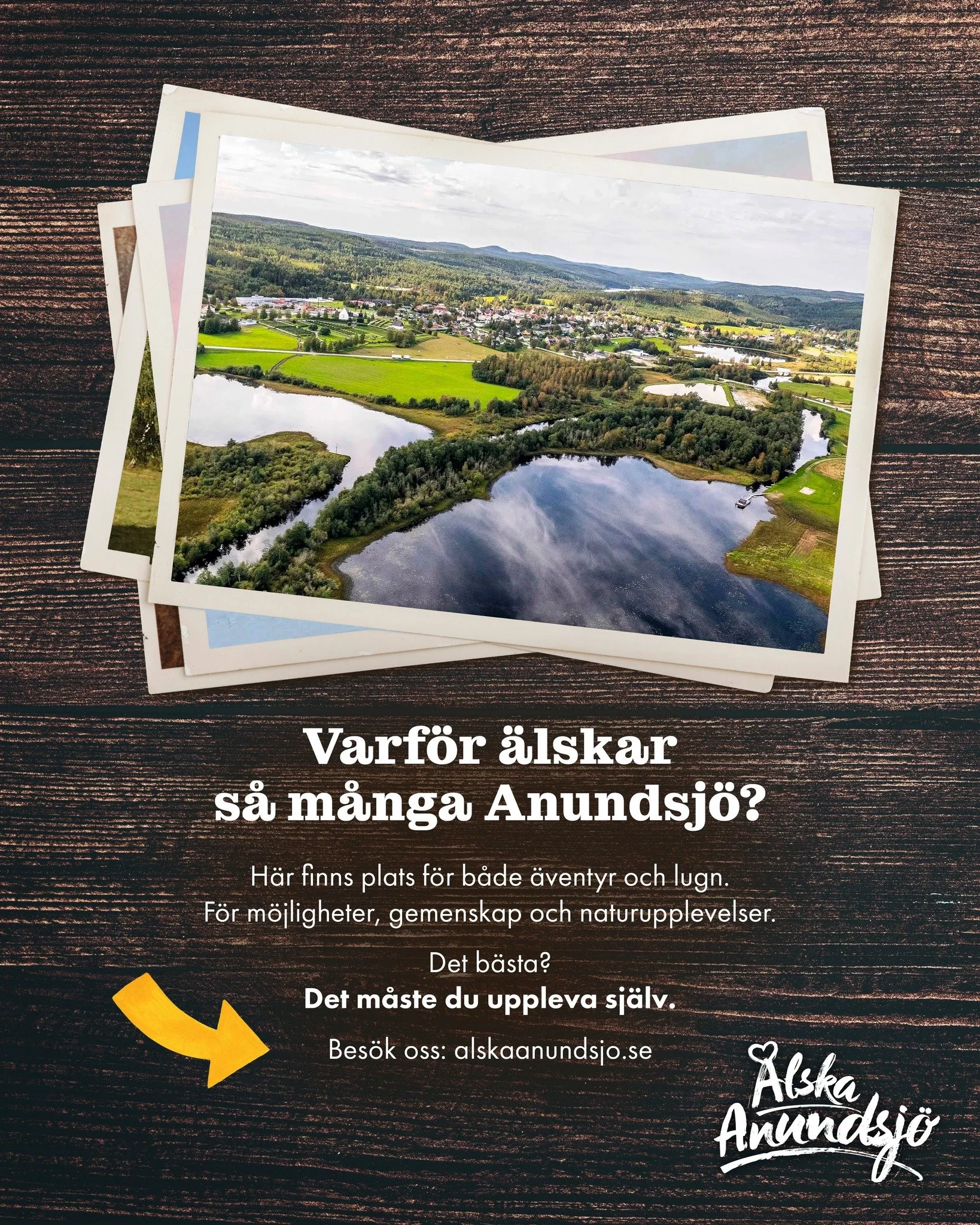 Älska Anundsjö säger vi! Men att i ord förklara varför det är så fantastiskt att leva och bo här är inte enkelt. Det måste upplevas. Kanske är det alla aktiviteter och evenemang som anordnas av bygdens livskraftiga föreningar och organisationer? Eller kanske är det den fantastiska naturen med berg och dalar, sjöar och vida skogar? Eller kanske är det gemenskapen och hjälpsamheten bland Anundsjös innevånare? Troligen är det allt detta tillsammans som gör Anundsjö så lätt att ÄLSKA!